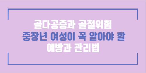 골다공증과 골절은 중장년 여성의 삶의 질을 크게 좌우합니다. 뼈 건강은 평소 생활습관 관리와 조기 검진으로 충분히 지킬 수 있습니다. 이 글에서 안내한 예방법과 식단, 운동법을 실천하면 건강한 노후를 준비할 수 있습니다. 무엇보다 중요한 것은 지금 바로 시작하는 것입니다. 꾸준한 관리로 활력 있는 중장년을 보내시기 바랍니다.